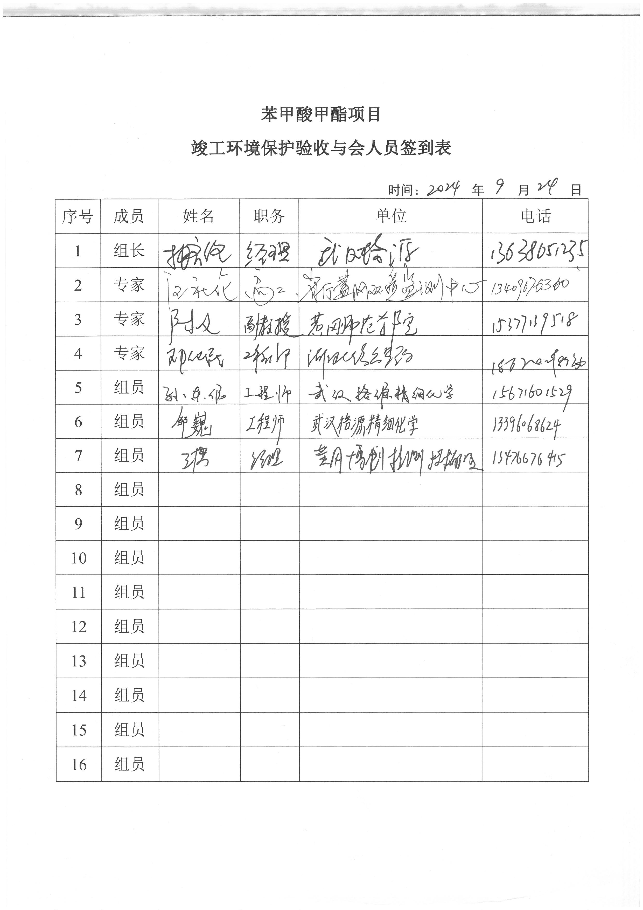 2024年9月24日,武漢格源精細化學(xué)有限公司在黃岡市主持召開了《苯甲酸甲酯項目竣工環(huán)境保護驗收監(jiān)測報告》技術(shù)評估會。